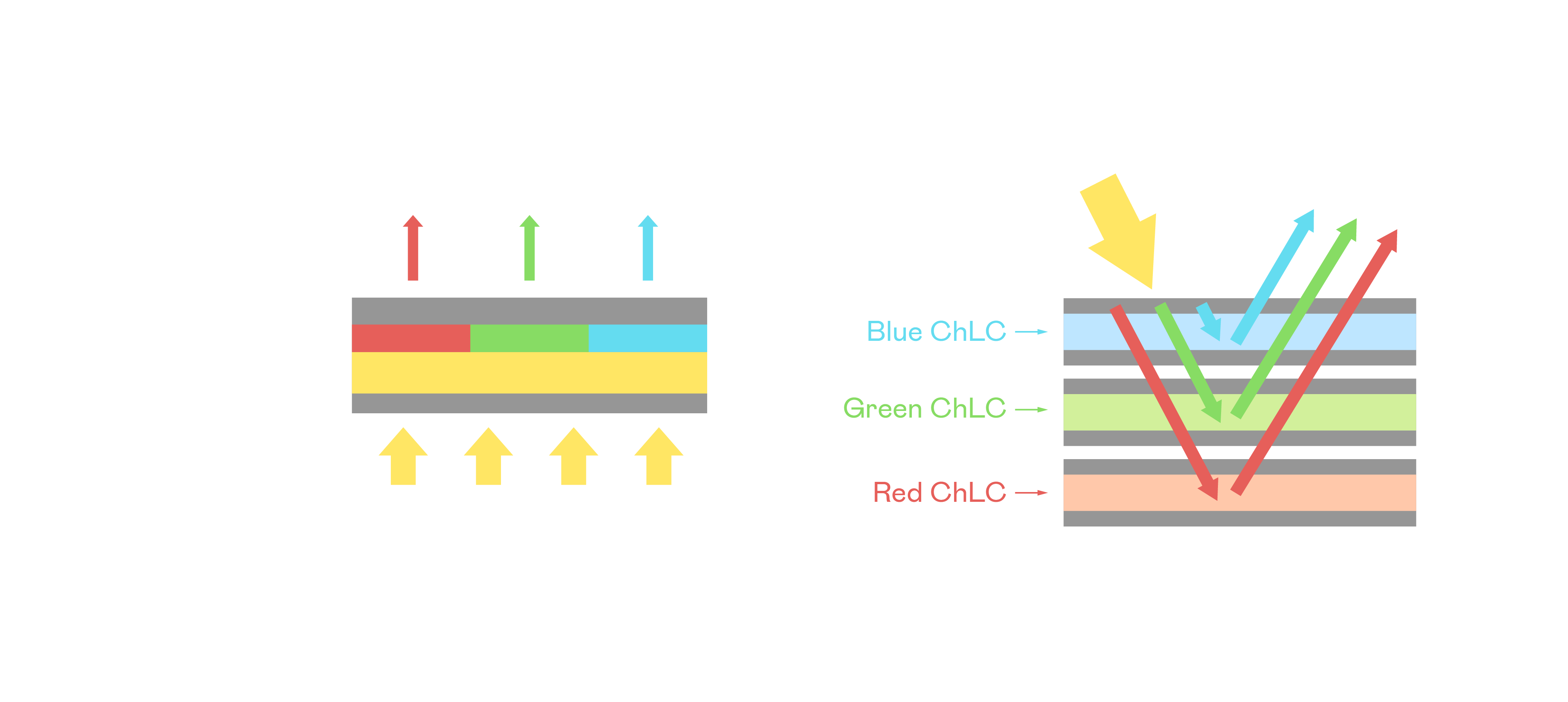 彩神Vll官网胆固醇液晶显示器是由红、绿、蓝三层胆固醇液晶面板堆叠而成,并采用无彩色滤光片设计,减少环境光在反射过程中的损耗。